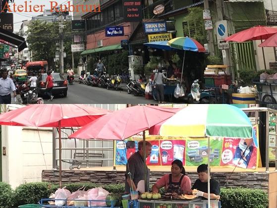 Lenzi Tuscan Kitchenへのランチ班の方々と別れ近所にお昼ご飯場所探検に。 BTSの駅からマリサLSへの道、いわば本道にはほんとうに飲食できる場所がない! 先発部隊で先にタイ入りされていたhiro先生からの情報で分かっていましたが、実際来てみるとまあ、ほんまにない。 でも教室を通り過ぎた反対方向に歩いて行くと大丈夫。屋台やホテルのレストラン、カフェなど飲食店は沢山ありました。これもhiro先生の事前情報。
