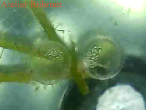 まずは水草の切れ端に絡みついていた卵。白く濁っていないので生きている(受精済み)と思って採りました。